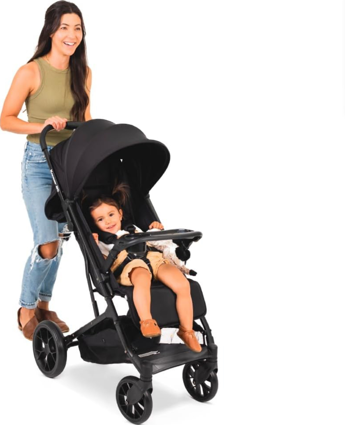 This lightweight umbrella stroller has shock-absorbing wheels, a reclining seat, and an extendable canopy. It’s designed for comfort and portability, making it a great choice for families on the move. Shop Now
